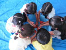 八幡保育園の姉妹園「愛・八幡保育園」は、より良い人、物、場所の設定をし、小規模で異年齢児保育の家庭的な雰囲気の中で、一人一人の個性を大切にし、 伸び伸びと遊び、自己表現をできるような保育をすることを保育方針としております。